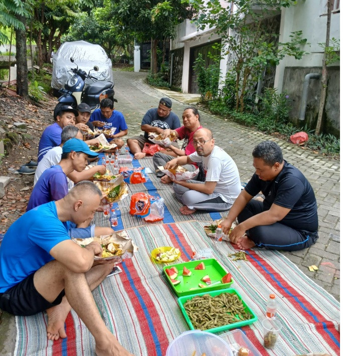Kegiatan diakhiri dengan ramah tamah dan makan lesehan bersama di area jalan Elektron, kebahagiaan warga dapat terlihat dari habisnya sajian makanan yang disediakan.